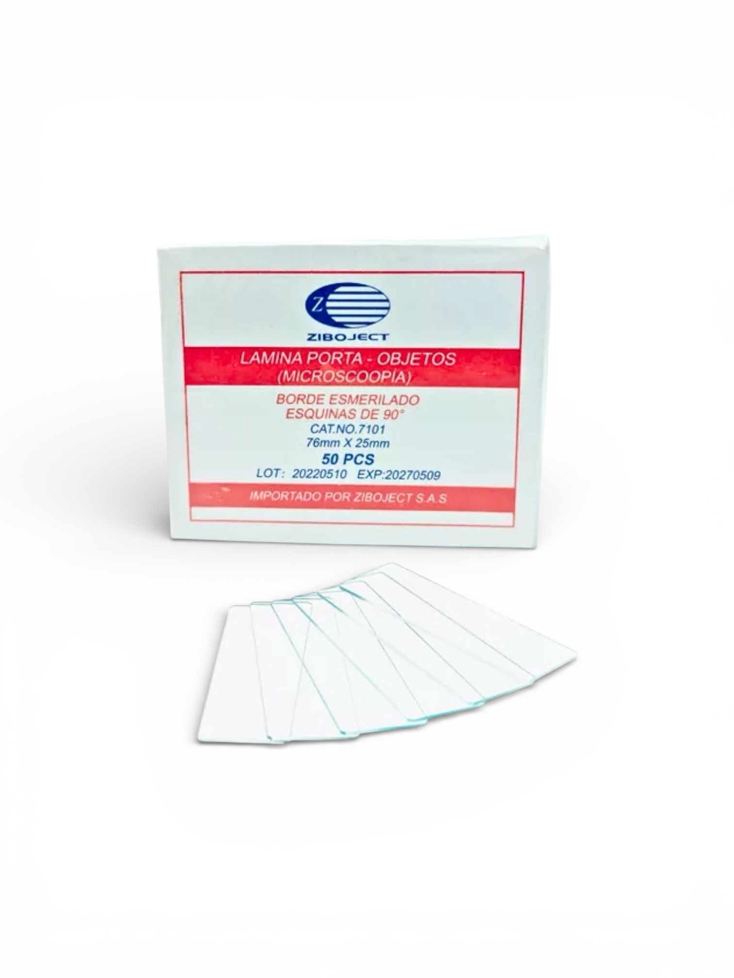 La Lámina Porta Objeto 25.4 × 76.2 mm Simple Ref. 7101 Esmerilada 90° Ziboject es un insumo fundamental para la preparación y observación de muestras en procedimientos de microscopía. Está fabricada en vidrio sódico-cálcico de alta transparencia, lo que permite una visualización clara y precisa de muestras biológicas, químicas o microbiológicas bajo el microscopio. Su diseño con esquinas a 90° y borde esmerilado proporciona mayor seguridad durante su manipulación y facilita la identificación de muestras en laboratorio. Gracias a su superficie uniforme y calidad óptica, estas láminas permiten preparar muestras con mayor estabilidad y precisión, siendo ampliamente utilizadas en laboratorios clínicos, centros de investigación, universidades y prácticas educativas.