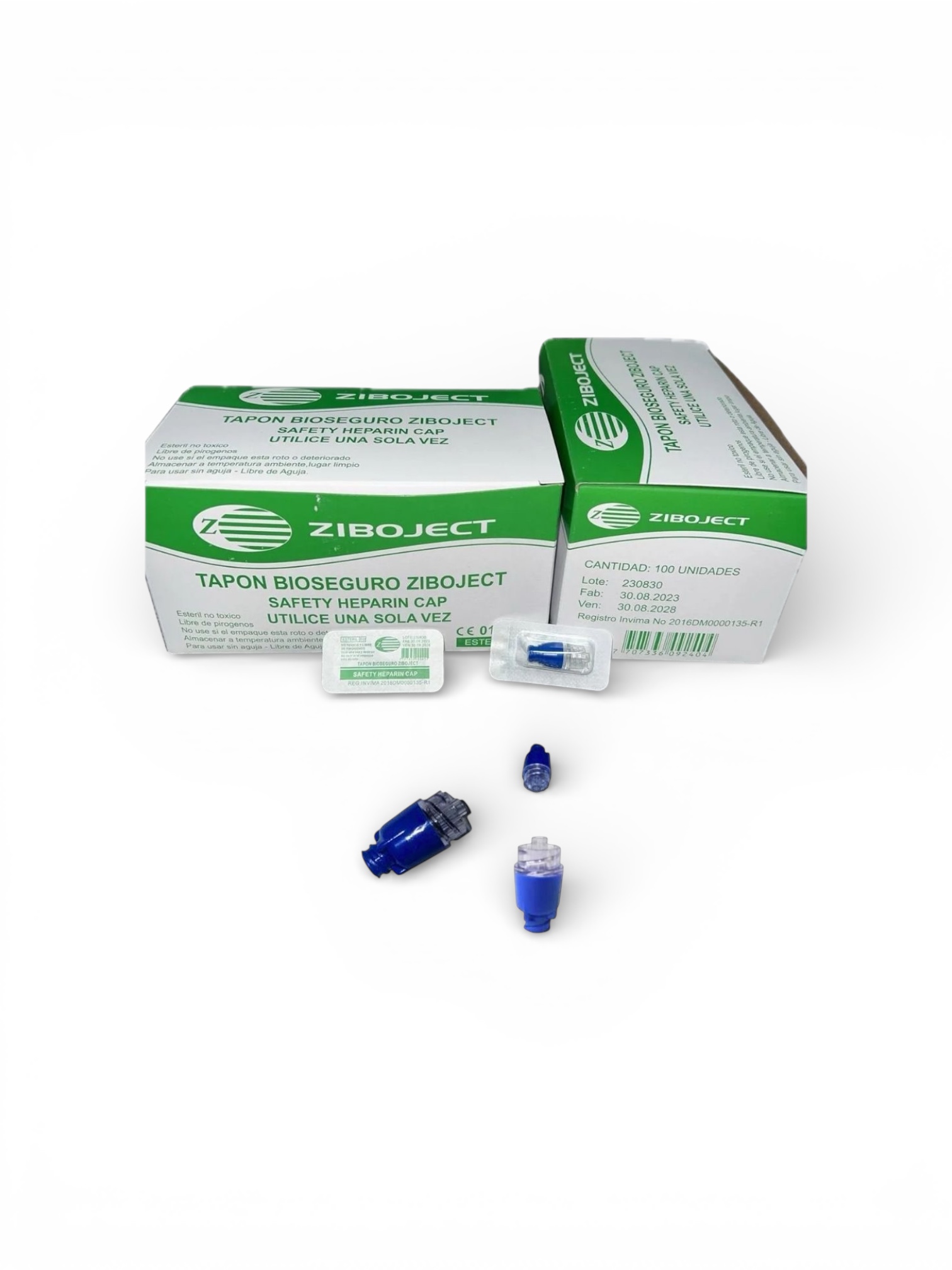 El Tapón Bioseguro o Conector Libre de Aguja Ziboject es un dispositivo médico estéril diseñado para ser utilizado junto con catéteres intravenosos o dispositivos de acceso IV, permitiendo la administración de medicamentos o soluciones sin necesidad de utilizar agujas hipodérmicas. Su sistema reduce significativamente el riesgo de lesiones por pinchazo y exposición a infecciones, brindando mayor seguridad al personal de salud y al paciente.